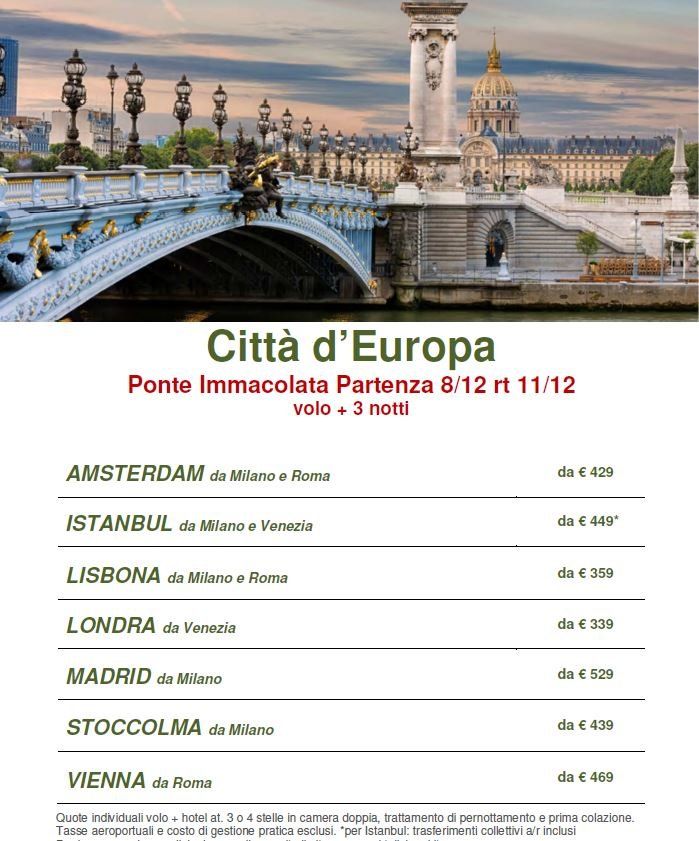 Tour organizzati tutto compreso per vacanze natalizie, pasquali e ponti. Viaggio in bus + sistemazione in hotel + vitto + visite guidate.